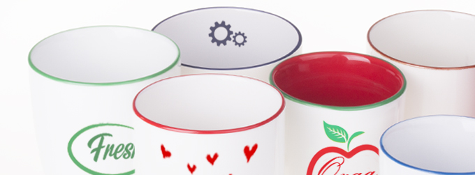 Metoda zdobienia górnych rantów ceramiki reklamowej (kubek, filiżanka), która zapewnia ciekawy efekt pokrycia rantu wybranym kolorem, trudno osiągalny dla innych technik nadruku. Dekoracja ta polega na ręcznym malowaniu elementu farbami ceramicznymi. Hand Made traktowany jest jako zdobienie dodatkowe, uzupełniające inne techniki, oraz uatrakcyjniające wygląd zdobionego przedmiotu. Metodę Hand Made możemy swobodnie łączyć z innymi technikami nadruku. Koszt usługi możesz sprawdzić wybierając w kalkulatorze w segmencie „usługi dodatkowe” opcję „Hand Made – Malowanie Rantu”. |